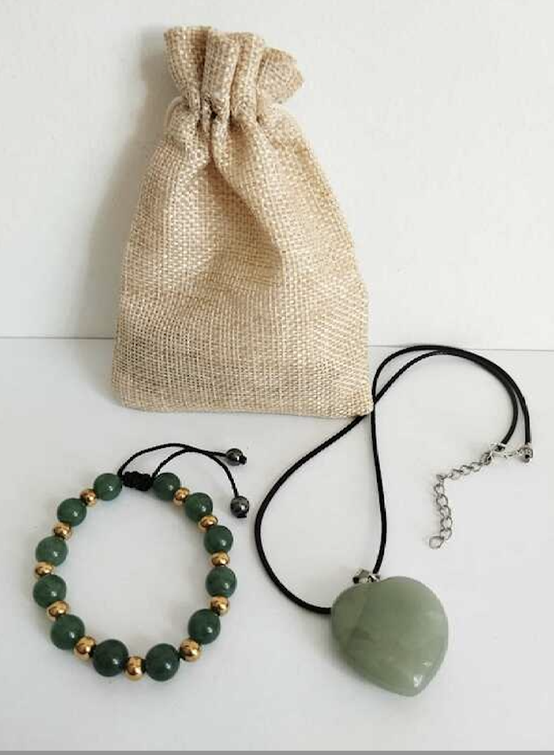 💚 Combo Aventurina & Colgante Corazón de Jade – Energía, Equilibrio y Amor